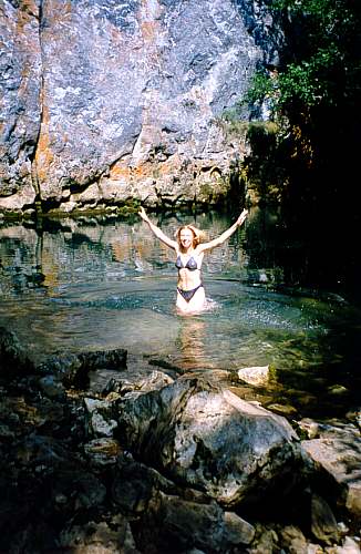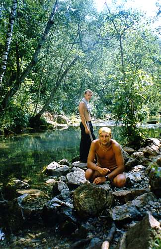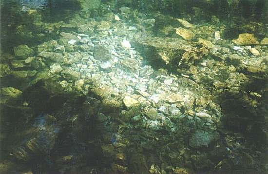 вытекает довольно широкий ручей с кристально чистой и довольно холодной водой. Смотришь в воду и